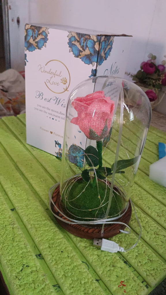 • FOREVER FLOWER: The product will never fade and wilt, Flower will never wilt, symbolizing eternal love. Love and beauty will be perfectly and infinitely stored in the glass dome.